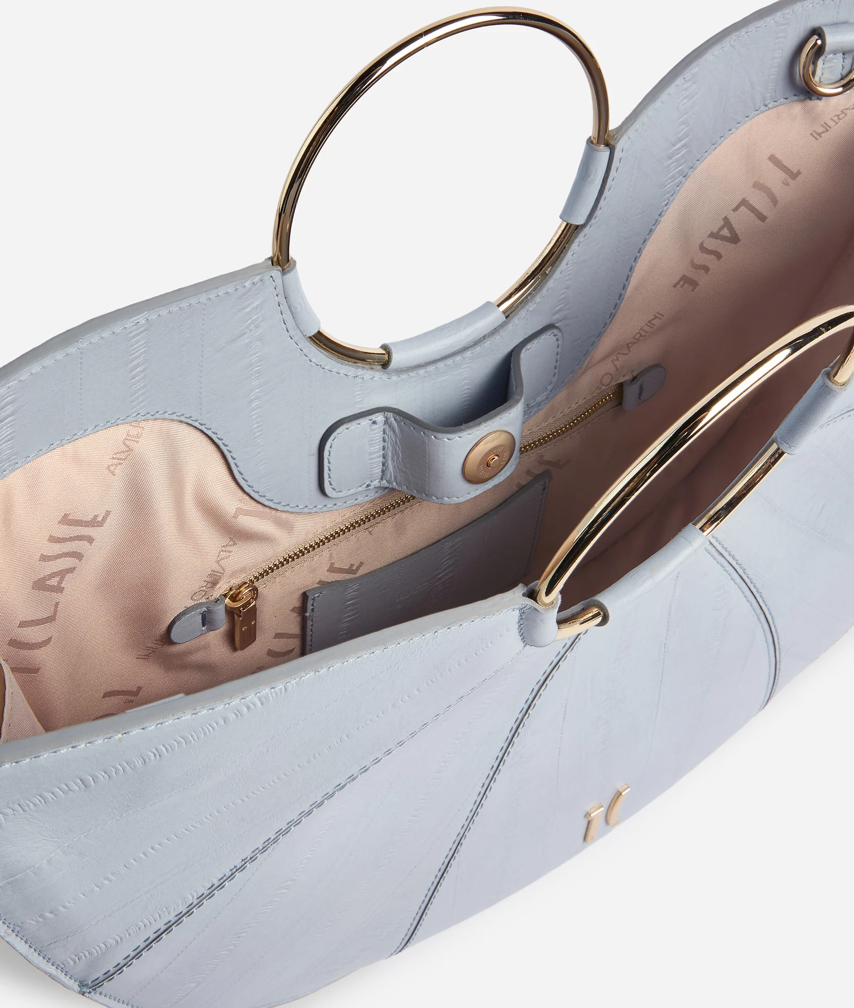 - manici a cerchio con finitura in oro chiaro protetto